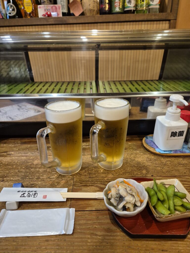 Still, with two guys together, we just kept walking straight ahead. Eventually, we found a place that was open—Gohyaku-en (五百圓), a cozy local izakaya!