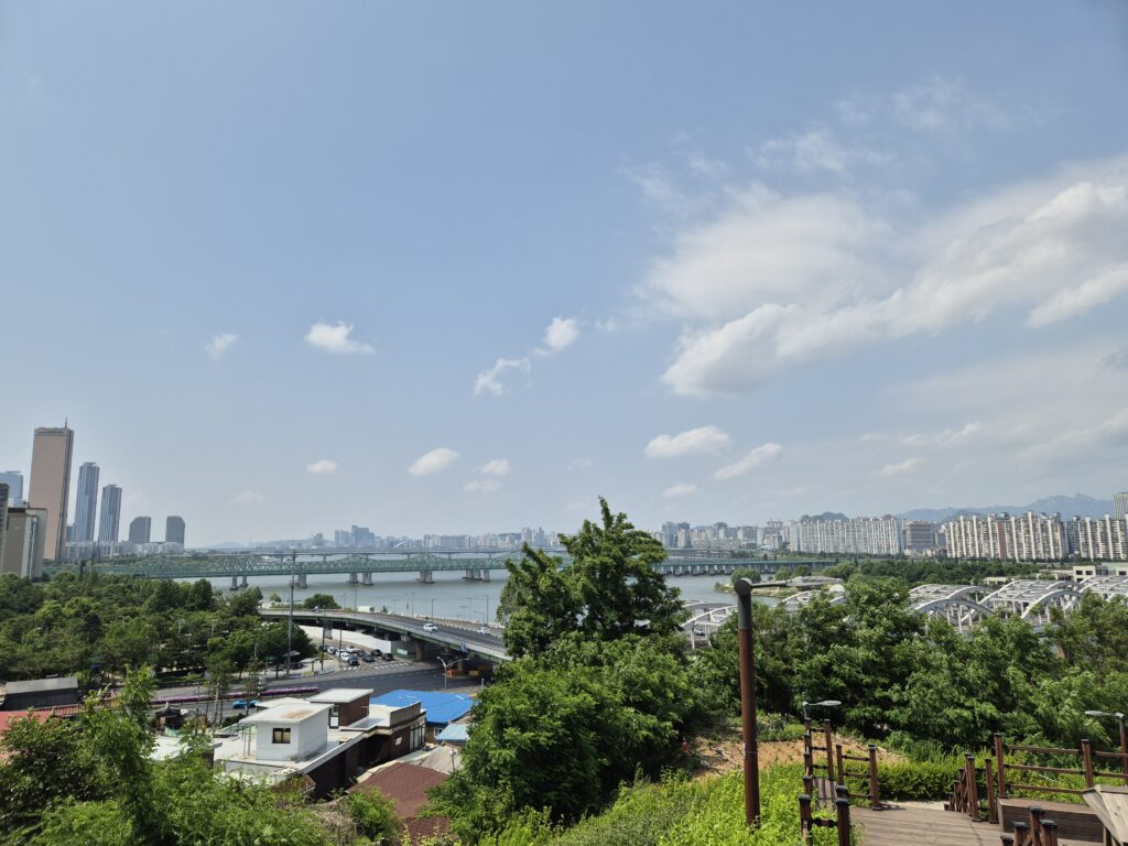 Located at the southern end of Dongjak Bridge. You’ll find the Noeul (Sunset) Cafe on the North-to-South side and the Gureum (Cloud) Cafe on the South-to-North side. This is one of the best spots for both daytime and nighttime cityscapes. You can take an elevator directly from under the Dongjak Bridge on the bike path.