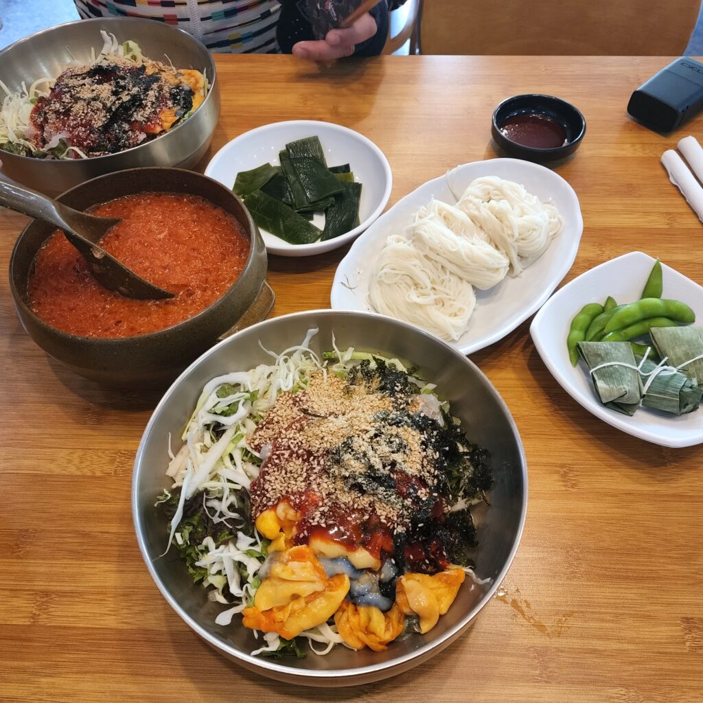 After conquering an uphill climb and breaking a sweat, nothing beats a bowl of Mulhoe (spicy cold raw fish soup). It’s incredibly refreshing and the perfect “cool down” meal for any cyclist.