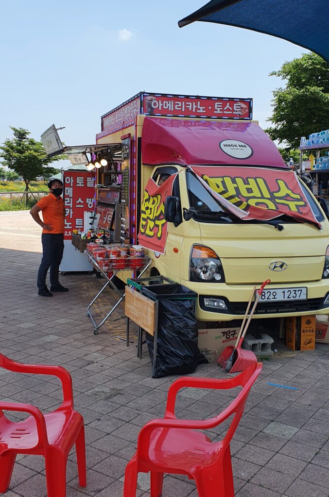 One of the best parts of cycling in Korea is the rest stops! As you ride along the path, you will come across charming food trucks parked near rest areas.